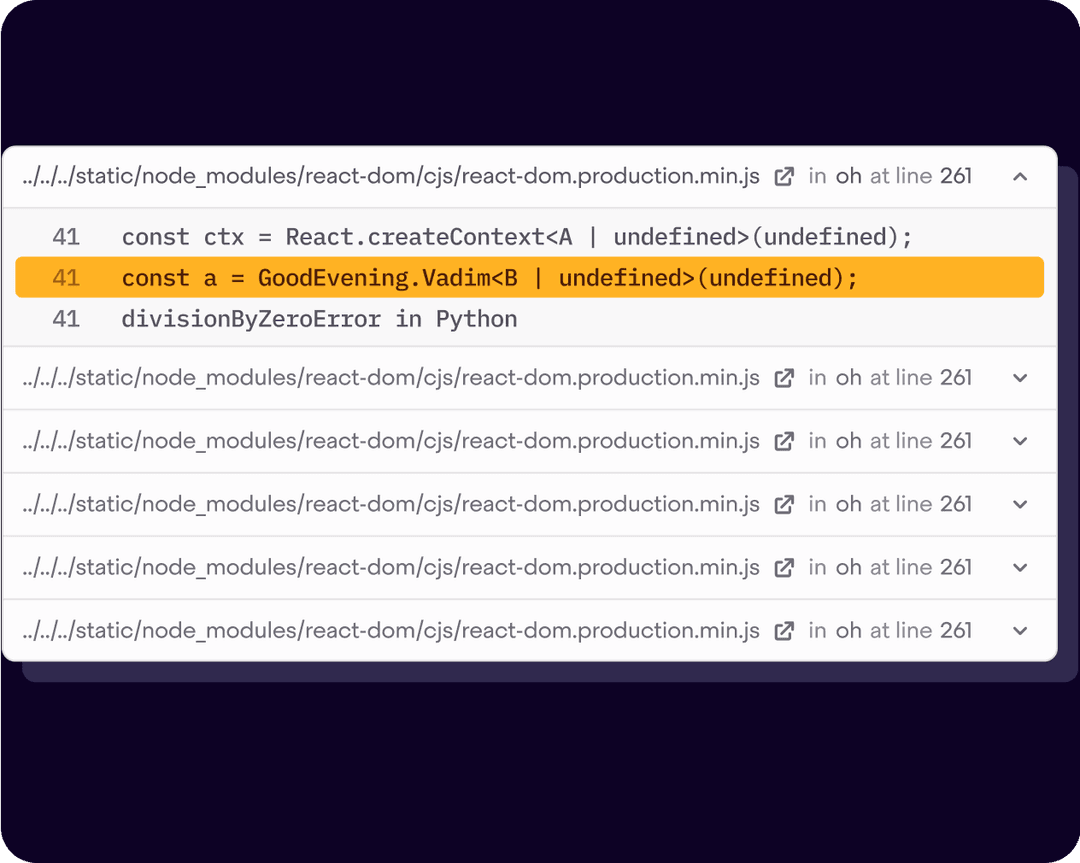 Reproduce hard-to-crack bugs with error monitoring across your stack.