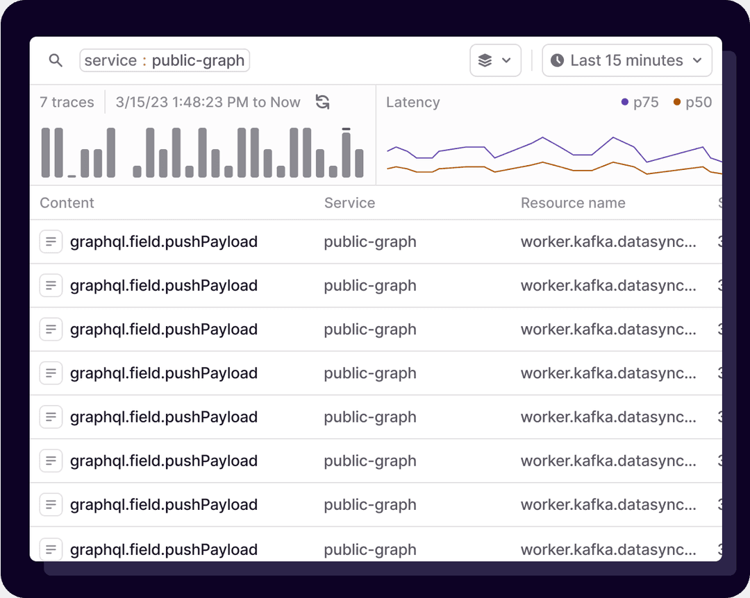 Search for and query the traces across your full-stack web app. Get started in seconds.